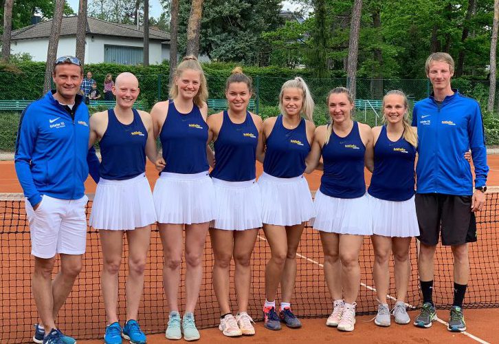 Es war spannend in Erlangen nach dem 3:3 durch die Einzelsiege von Justine (Nr. 1), Elisabeth (Nr. 2) und Lea (Nr. 5) und dem Doppelerfolg Justine/Elisabeth. Leider konnte der nötige Punkt in den beiden übrigen Doppeln noch nicht erzielt werden. Dennoch zeigt die Formkurve steil bergauf. Stolz können die jungen Damen über ihre ersten Siege in der Regionalliga ihrer Karriere sein. Ob es wohl an Mario Schliefke lag, der wie immer für beste Stimmung im Team sorgte? Wir sagen Danke und super Mario!!!! Ergebnisse im Detail auf einen Blick Alle Tennisfreunde sind herzlich eingeladen zum Heimspiel am 30. Mai 2019 – 11 Uhr. (Foto: Mario Schliefke, Die Mannschaft mit Trainer und Präsident in Erlangen 2019) ![]()