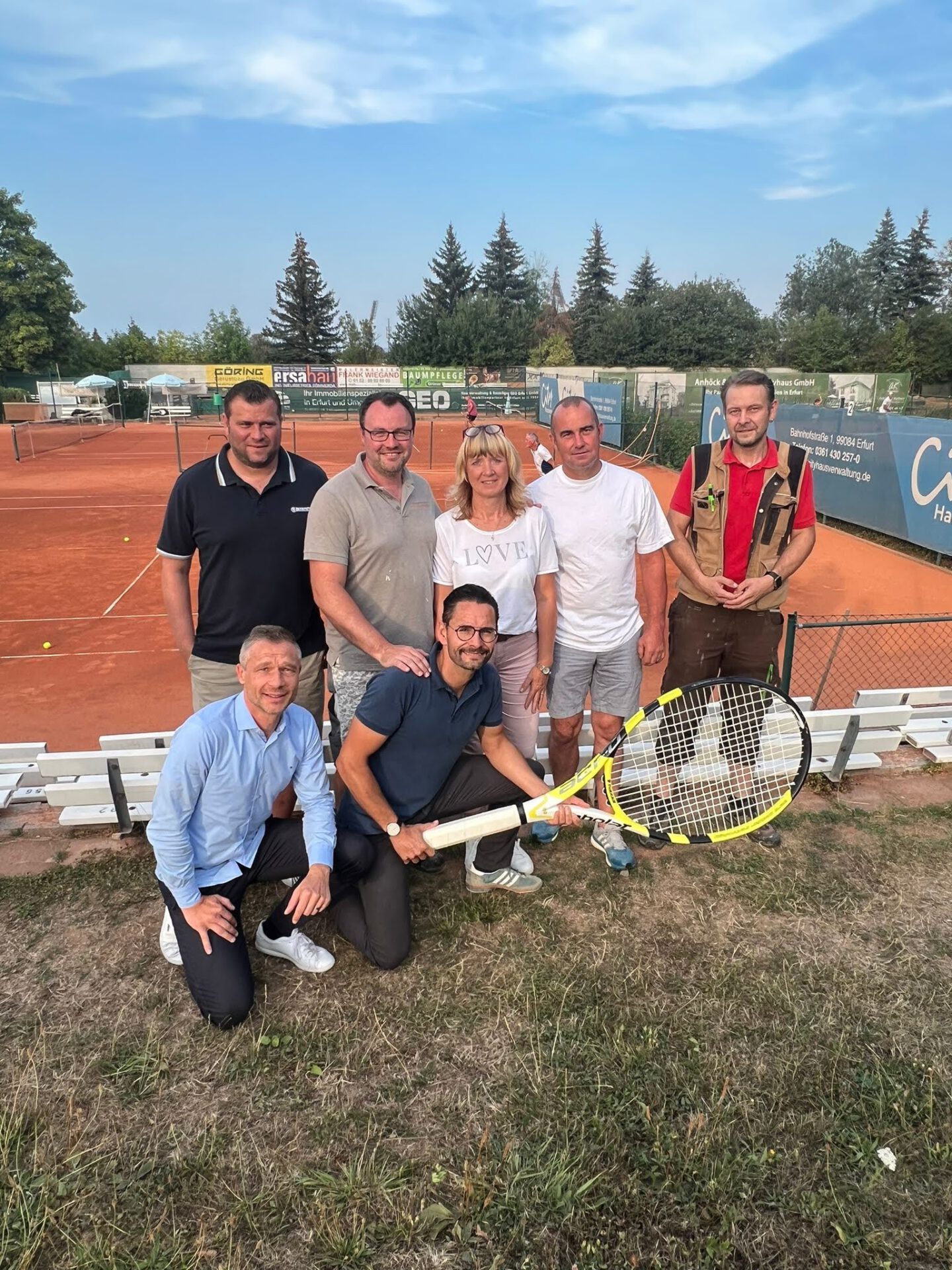 In der vergangenen Woche durften wir auf Initiative unseres Sponsors Nico Heinrich (HT Financial Design GmbH) unsere neuen Sponsoren auf der Tennisanlage begrüßen. Aufmerksame Tennisspieler sehen eine neugestaltete Wand auf Platz M mit den entsprechenden Werbebannern. Den erfolgreichen Unternehmen des Handwerks hat dieser Abend sichtlich gut gefallen. Wir sagen herzlich willkommen und Danke für die Unterstützung des Vereins. (Bild: Nico Heinrich)
