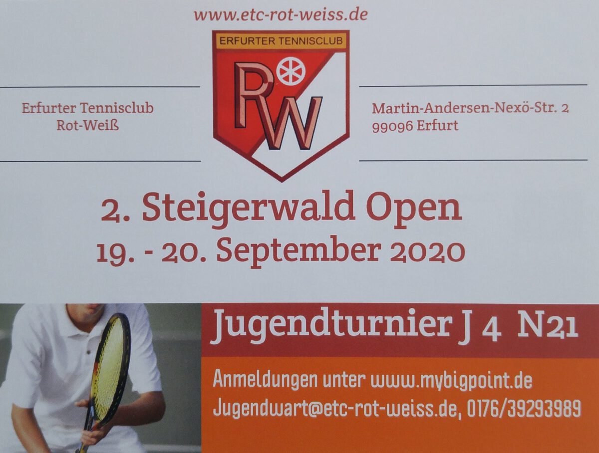 Volle Felder in den Konkurrenzen 12 Jahre bis 21 Jahre erwarten die Teilnehmer bei den Steigerwald-Open am kommenden Wochenende. Dank unserer Sponsoren gibt es ein kleines Welcome-Geschenk, Sachpreise sowie Pokale. Dafür sorgt das „Businessteam Krämerbrücke“. Wir richten das offene DTB – Jugendturnier gemeinsam mit dem befreundeten Erfurter Club, den TC 93, aus, heißen alle Spielerinnen und Spieler herzlich willkommen und wünschen viel Spaß und maximale Erfolge.