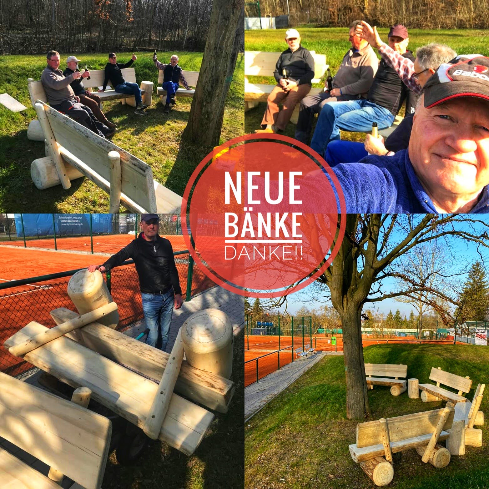 Neue Bänke hat uns eine Gruppe von Mitgliedern spendiert. Organisiert von Roland und Jochen und den Helfern hieß es gestern schleppen, aufstellen, ausrichten und die Frühlingssonne genießen.
