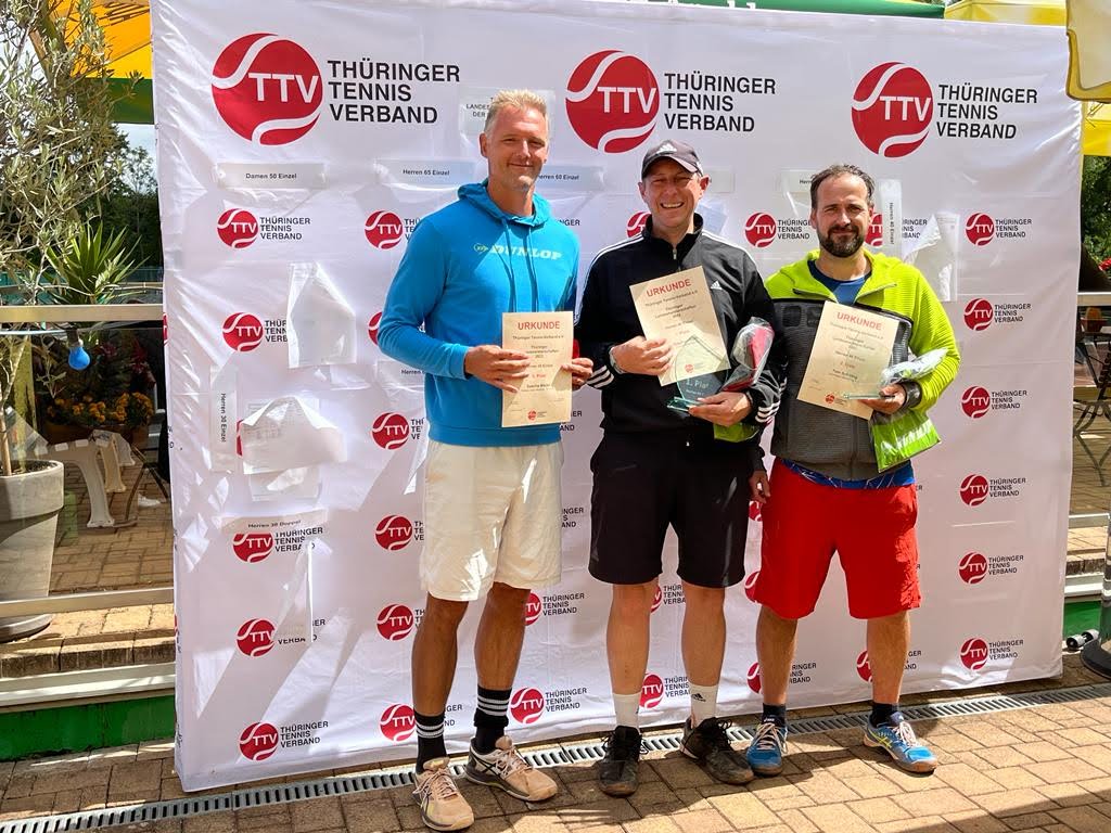 Marco Lorenz (Bild unten rechts, Mitte, Herren 30) und Stephan Roth (Herren 40, Bild links, Mitte) sind die neuen Landesmeister. Auch Andi Röhrich (Herren 50, Bild mitte, ganz rechts) und Kevin Reeder (Herren 30) sowie Wolfi Nitschke (60, ohne Bild) dürfen wir genauso zu den Erfolgen gratulieren. Bilder: Marco Lorenz / Andi Röhrich