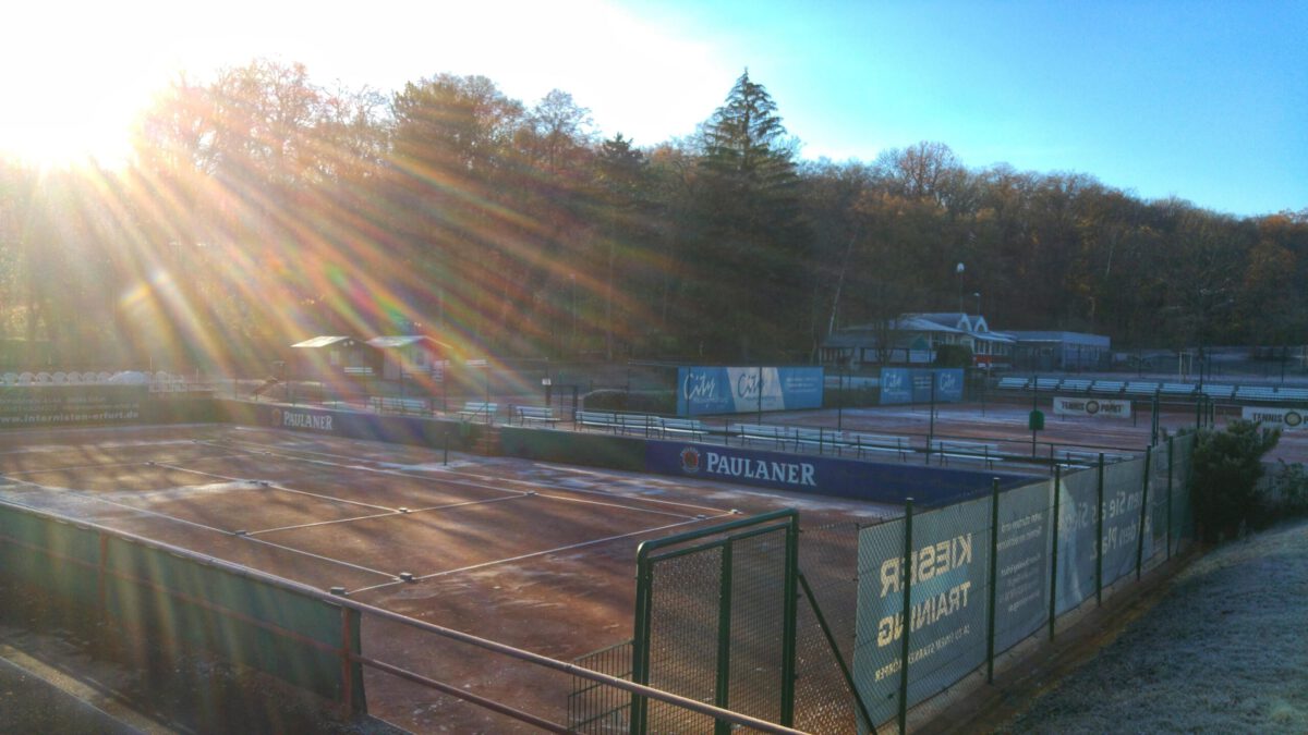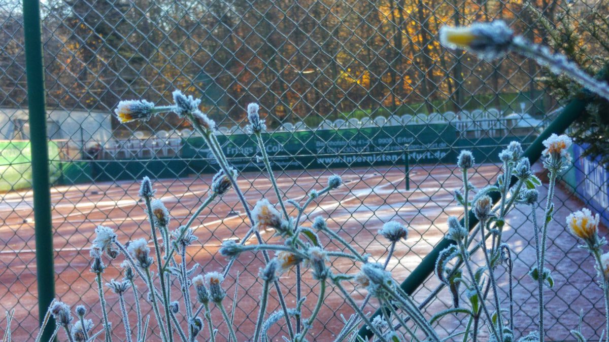 Der Frost hat unsere Tennisanlage übernommen. Zum Glück ging es auf der Baustelle dank Federführung der STRABAG mit den beteiligten Unternehmen voran. Die Firma Mütze & Rätzel, die Tennisplatz- und der Landschaftsbauer haben im milden Herbstwetter alles geschafft. Die Ballfangzäune sollen bis Ende Dezember fertig sein. Der Neueröffnung im Frühling steht baulich jedenfalls nicht im Wege!